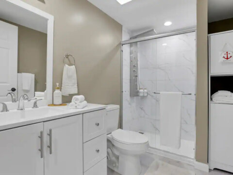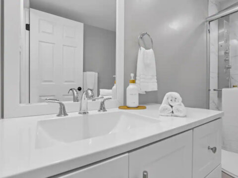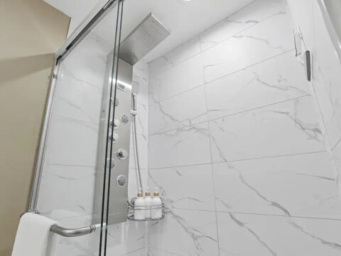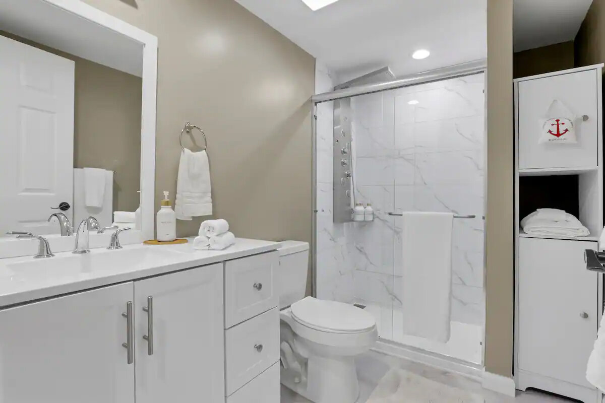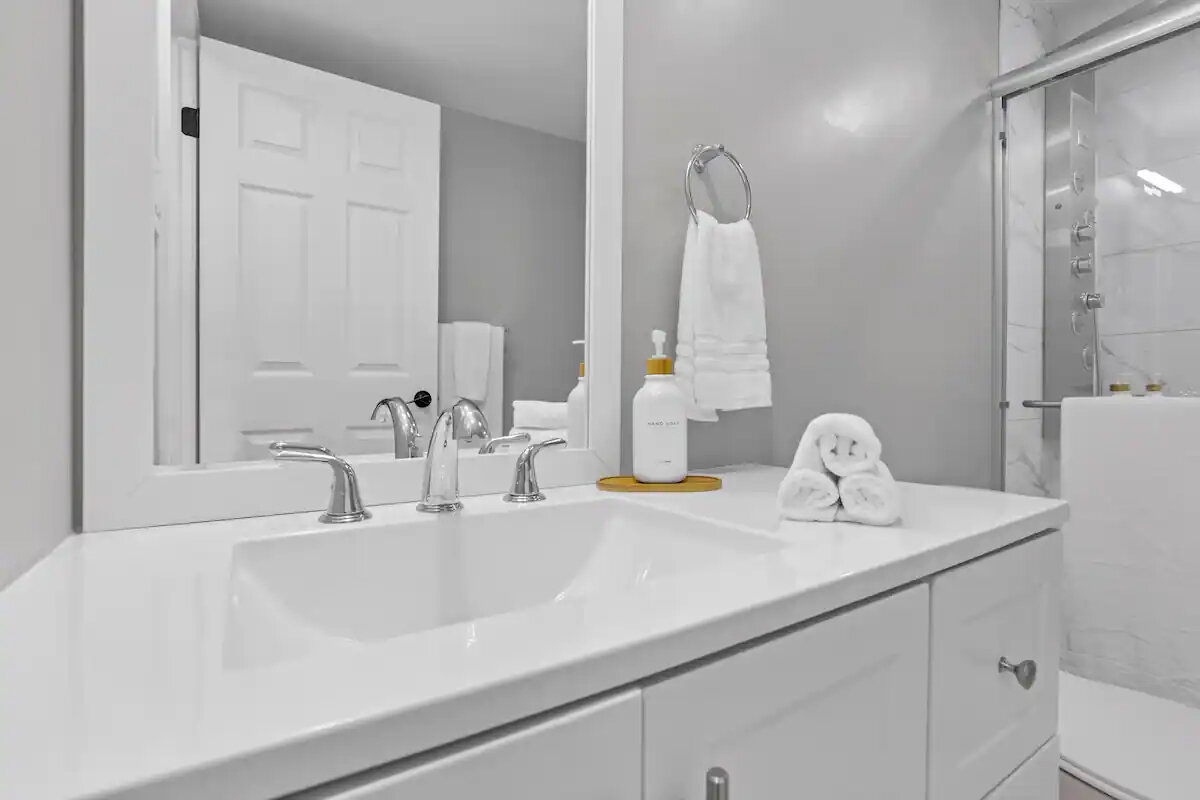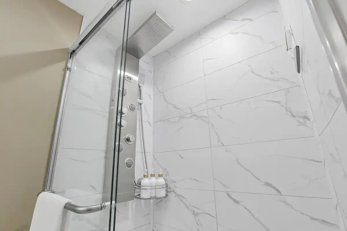 πΏ Sparkling Clean Bathroom Freshen up in the spotless full bathroom featuring a rainfall-style walk-in shower with multiple settings. Weβve also stocked the space with fresh towels, a hairdryer, and complimentary toiletries for your convenience.