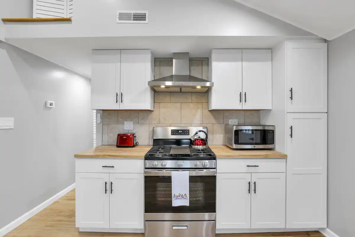 π³ Fully Equipped Kitchen Cook with ease in the modern kitchen, complete with a stove, oven, microwave, refrigerator, cookware, utensils, and kitchen essentials so you feel right at home.